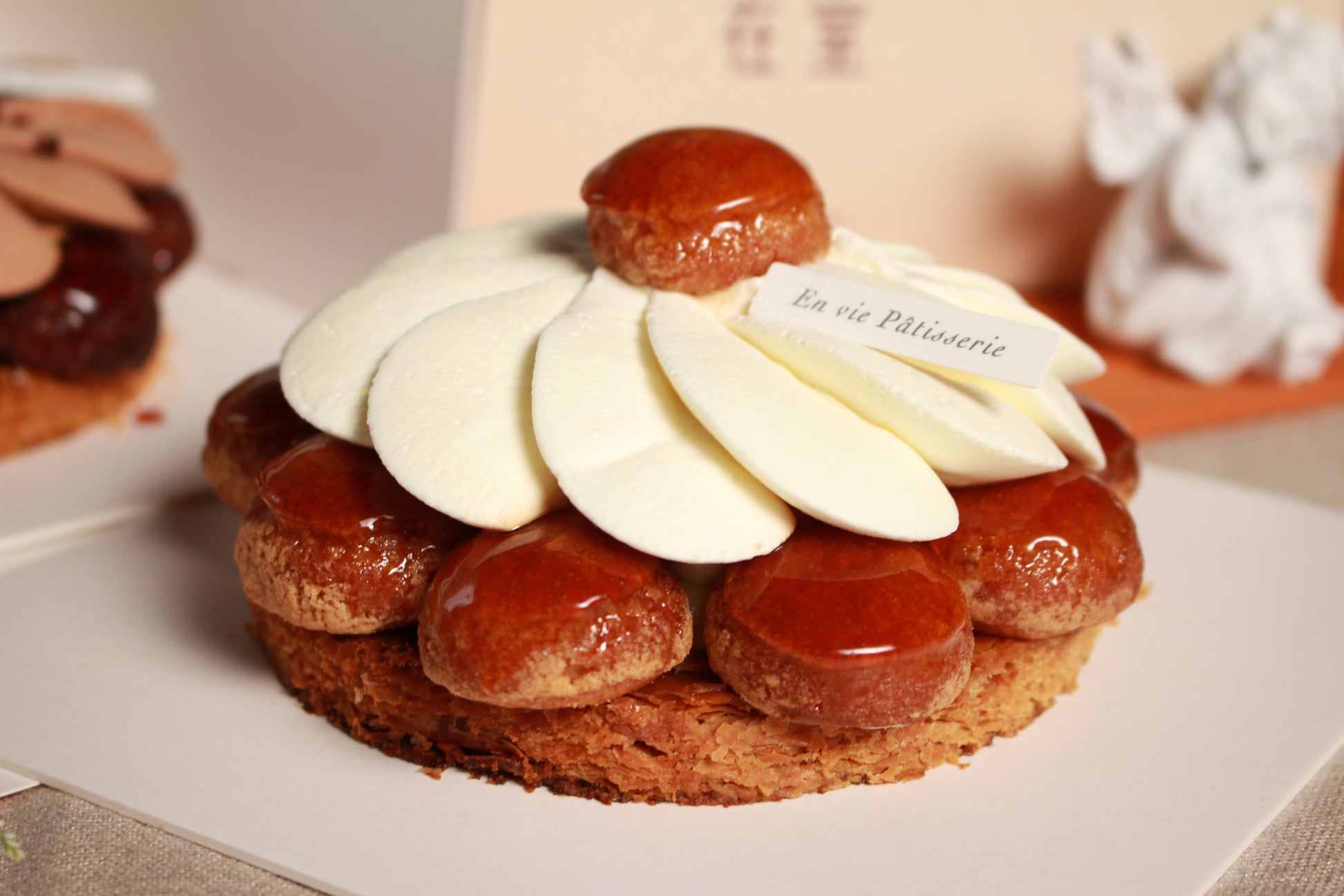 在室的聖多諾黑被網路評價為「神級」,許多人到店裡、市集指名要吃,我們幫你宅配到家!