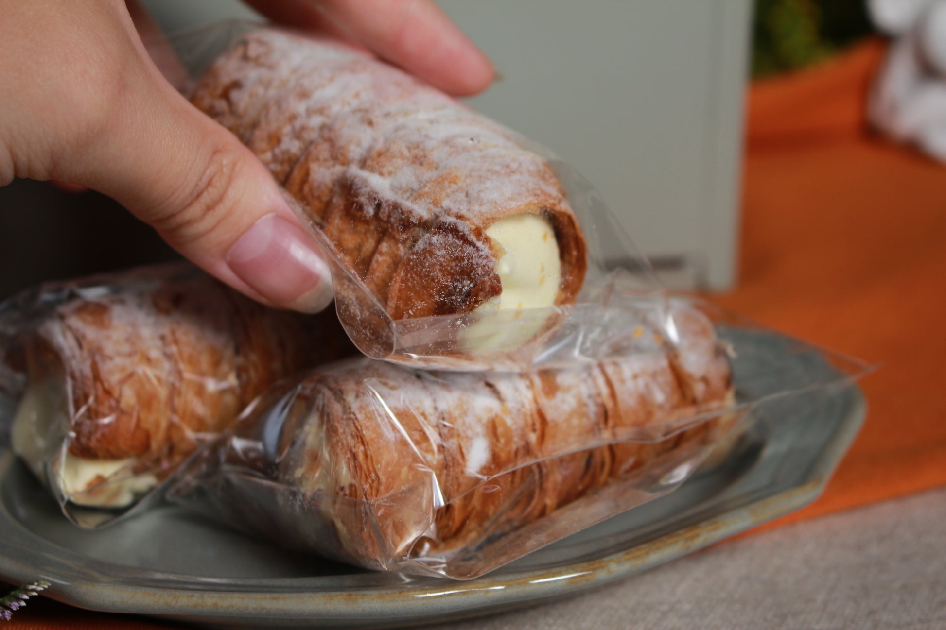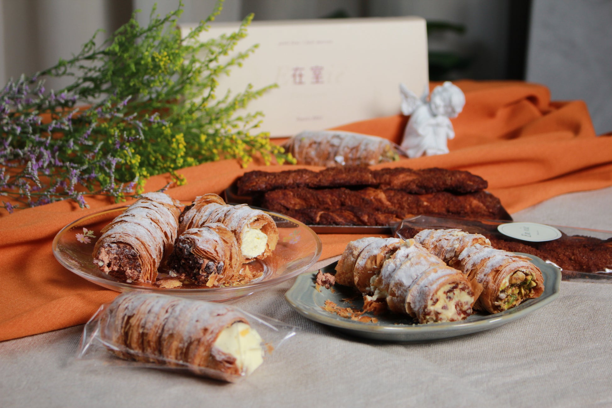 把千層派變成捲心酥!不用刀叉,不怕掉屑,輕鬆入口乾淨俐落!這麼好的點子,其實是在室甜點參加市集時想到的,他們希望客人可以邊走邊吃,便利享受招牌的千層派,於是把千層酥皮做成螺旋狀,再灌入內餡。這種作法很make sense!除了方便性,酥皮跟內餡也結合得更好,每一口都能均勻吃到外脆響內軟濃,不僅顛覆了千層派的型態,也讓「捲心酥」變得更高級!