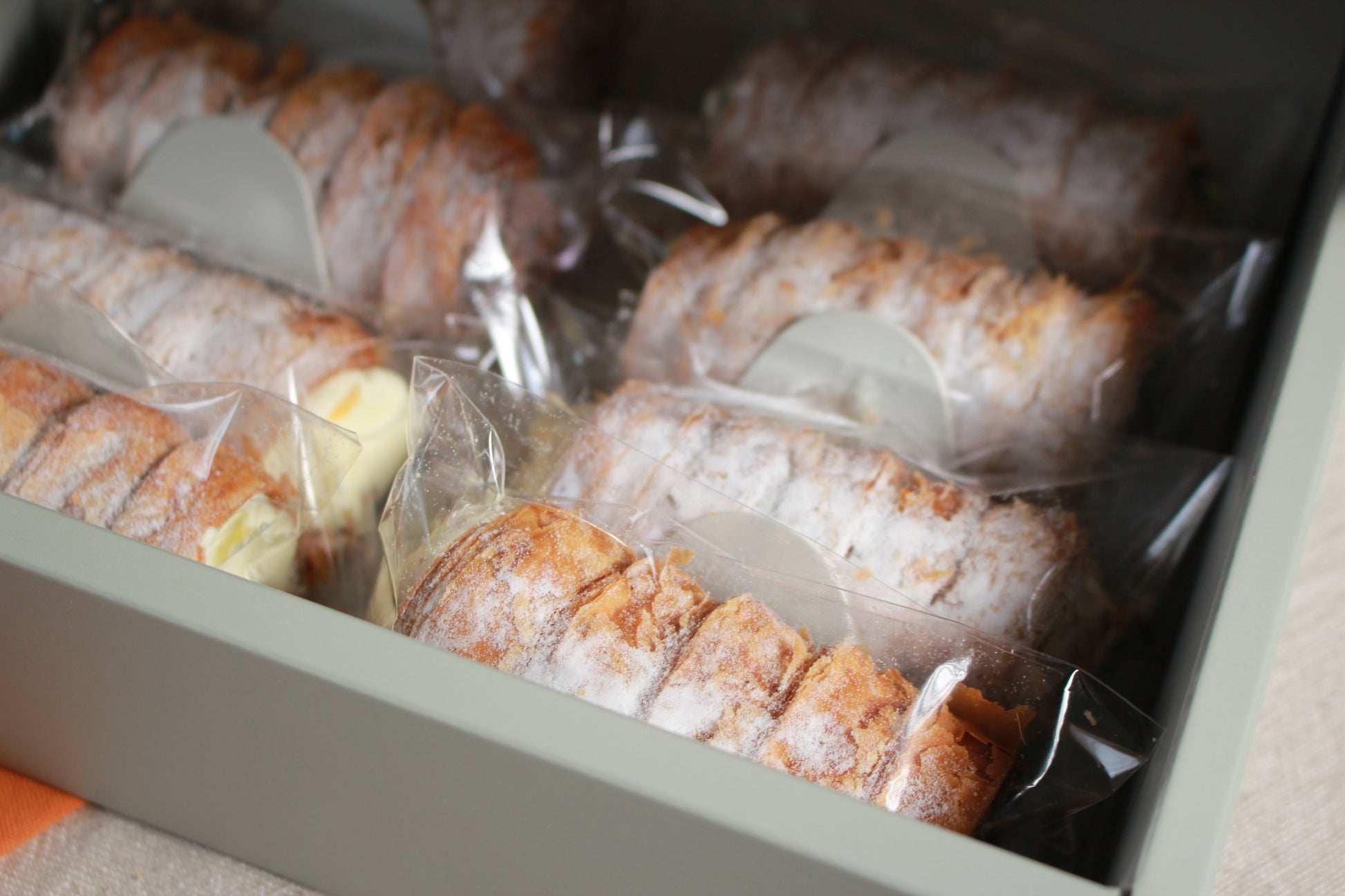 當初擺市集時,我們希望讓大家能隨手就吃到在室的招牌千層,不需刀叉、不怕掉屑,於是靈機一動,把千層做成螺旋狀,不只方便灌餡、好拿好吃,也多了點玩心。