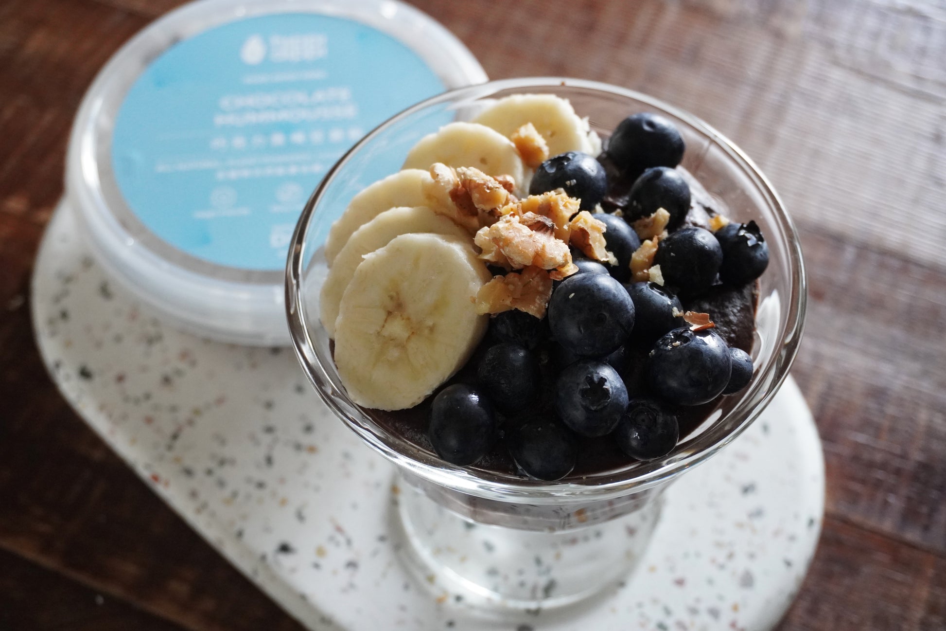 令人驚艷奢華的巧克力鷹嘴豆慕斯,結合了鷹嘴豆和班巴豆奶的濃郁,微微的椰子香和芝麻帶來堅果氣息,搭配生可可、椰子花蜜糖及香草的誘人風味, 質地滑順完美融合。