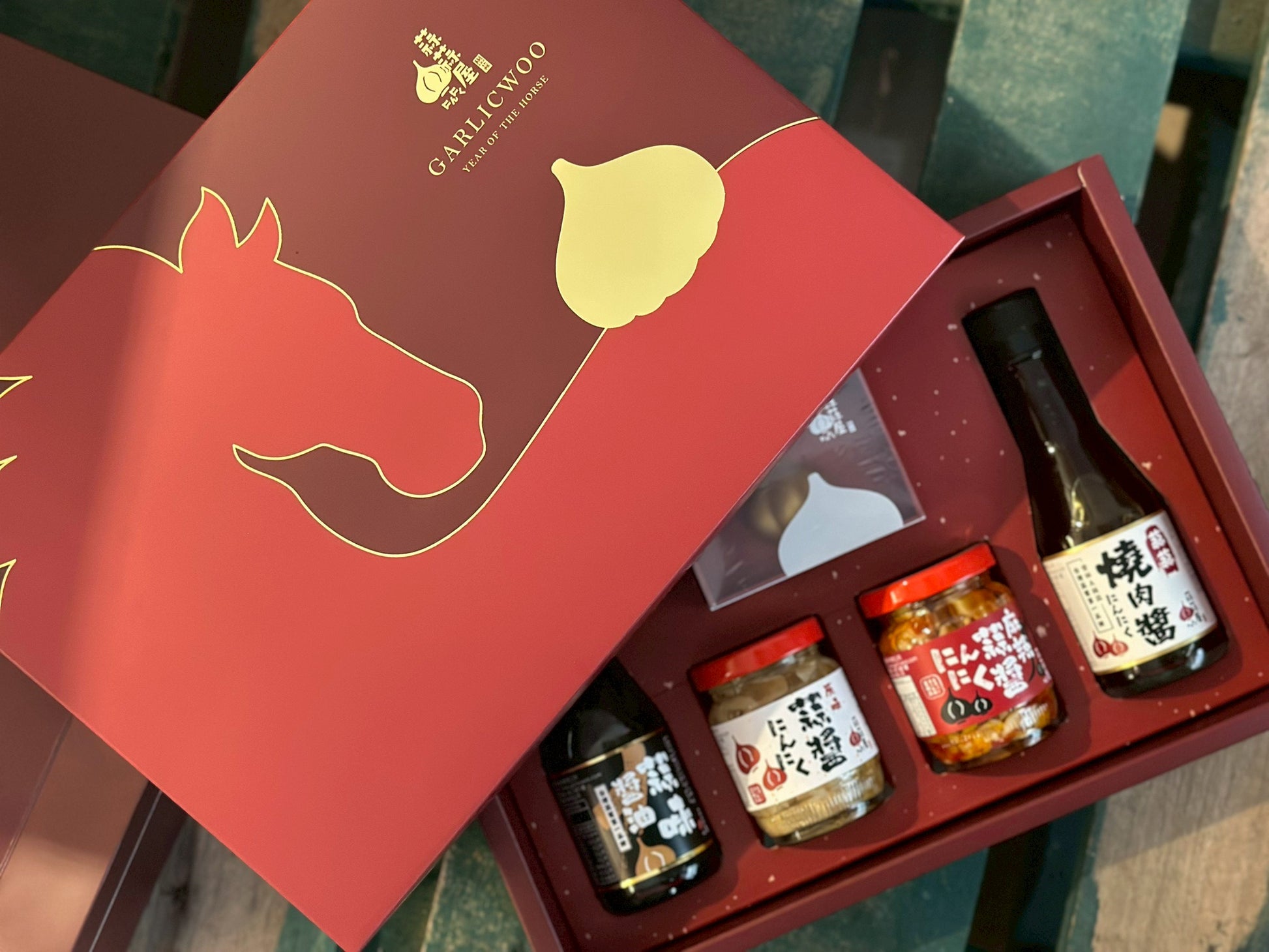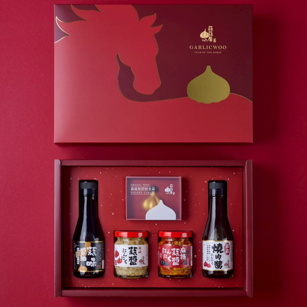 蒜蒜屋以「金蒜隨馬來」的喜氣祝福,將招財、好運、成功 通通裝進一盒,打造 2026 年度最具話題性的頂級蒜醬禮盒。