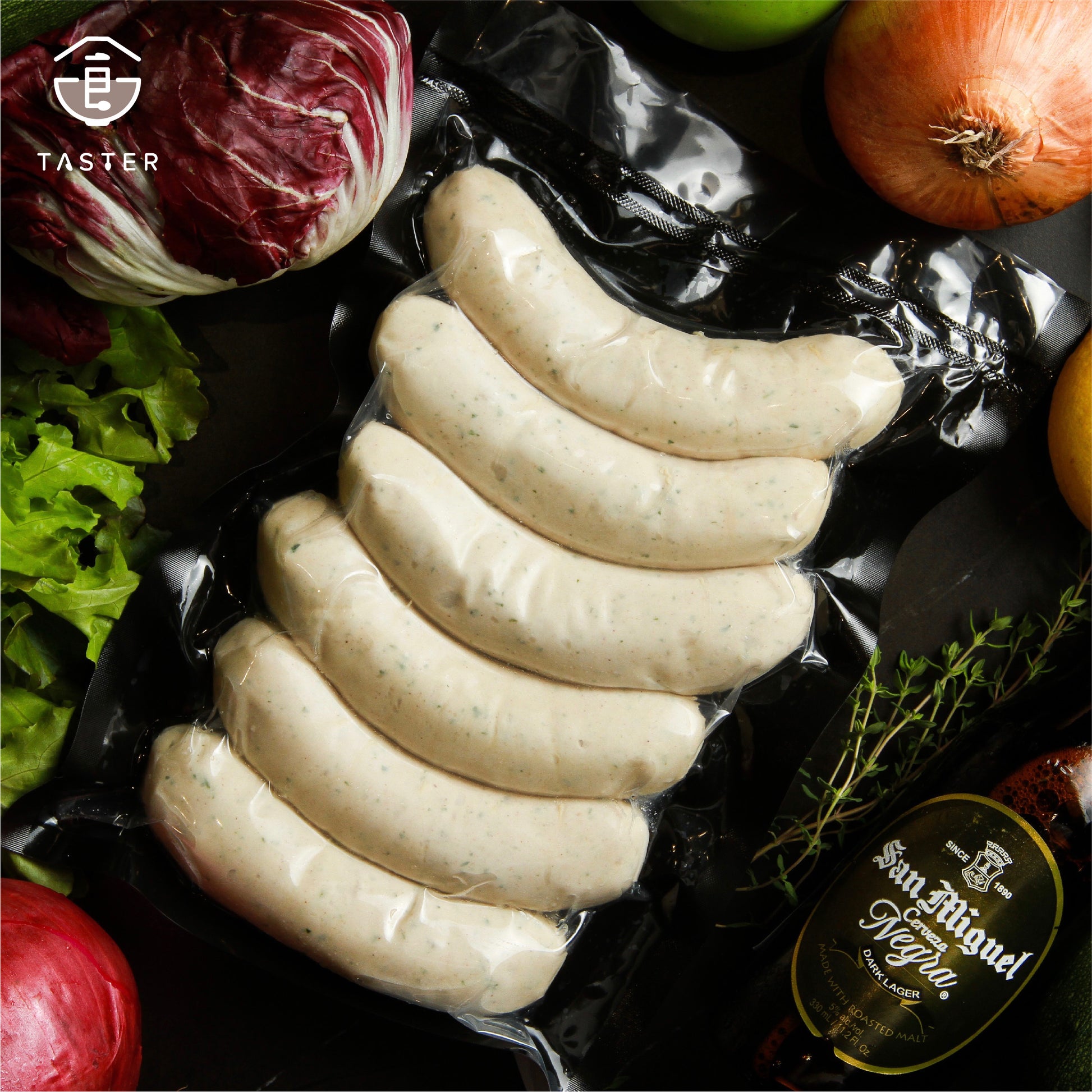道地的巴伐利亞白腸 Weisswurst,師承歐洲德國與瑞士人 的打漿手法,選用百分百的優質台灣溫體豬,無添加大豆 填充粉。連歐洲人吃了都有了思鄉的念頭。 此產品已經過烹煮,帶回家,加熱後即可食用。此產品也 經過SGS檢驗生菌數的測試,消費者可安心食用。