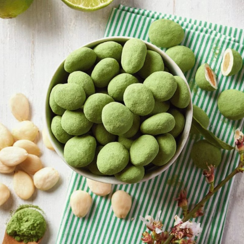 【成分】糖、馬可那杏仁(23%)、可可脂、奶粉、麥芽糊精、脫水檸檬粉(1%)、提取物(薑黃、螺旋藻、蘋果)、檸檬酸、大豆卵磷脂、玉米澱粉、香料、食用藍色一號