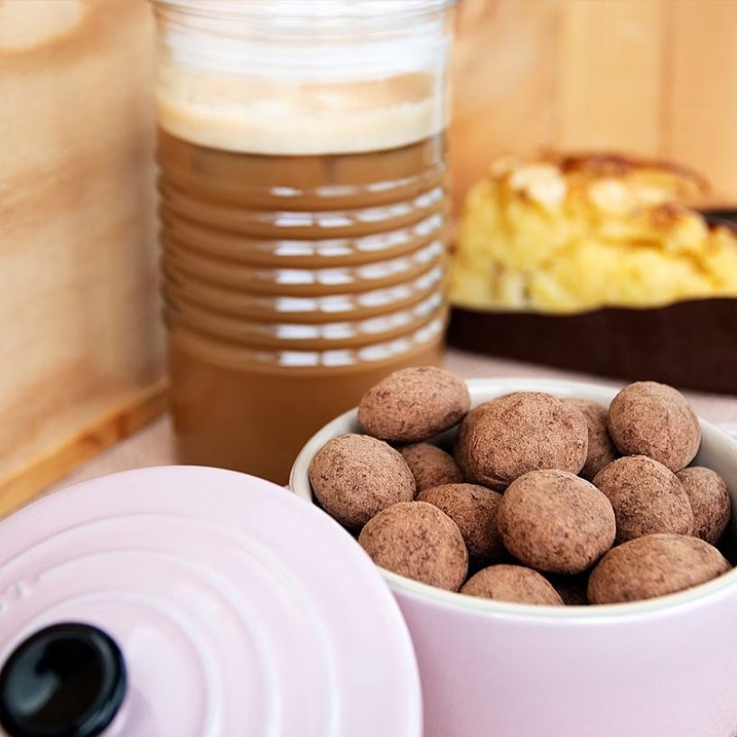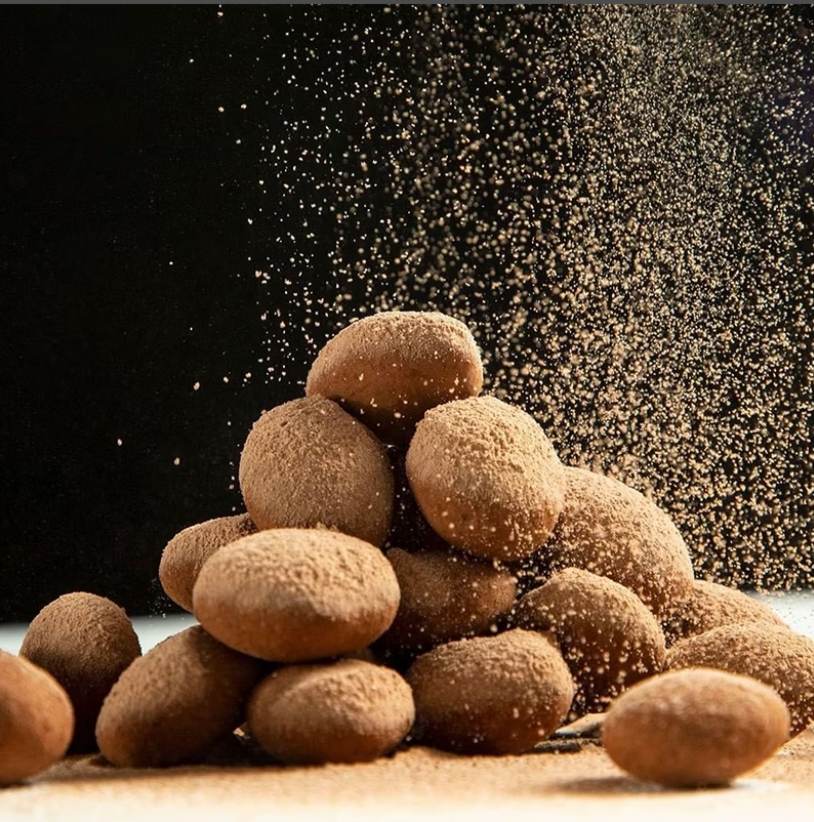 使用馬可那杏仁,外層裹上 Gianduja 榛果醬,鋪上味道濃郁的純可可粉,口感絕佳。