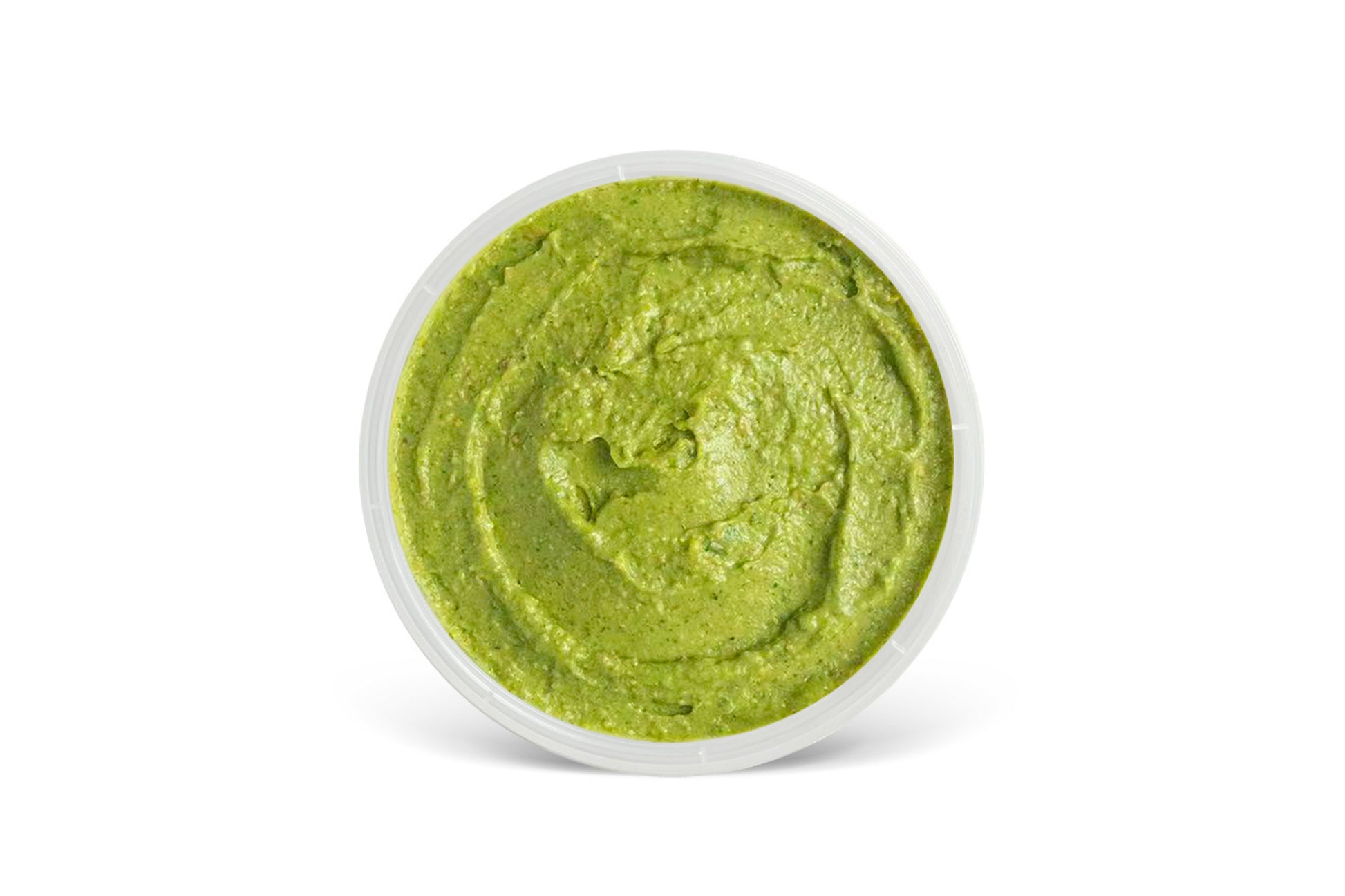 富含奶油般的酪梨、開心果、香芹、橄欖油以及檸檬汁調製而成,這款簇新鮮綠、讓人納悶怎麼可以那麼好吃的沾醬,搭上任何食物都是絕配。
