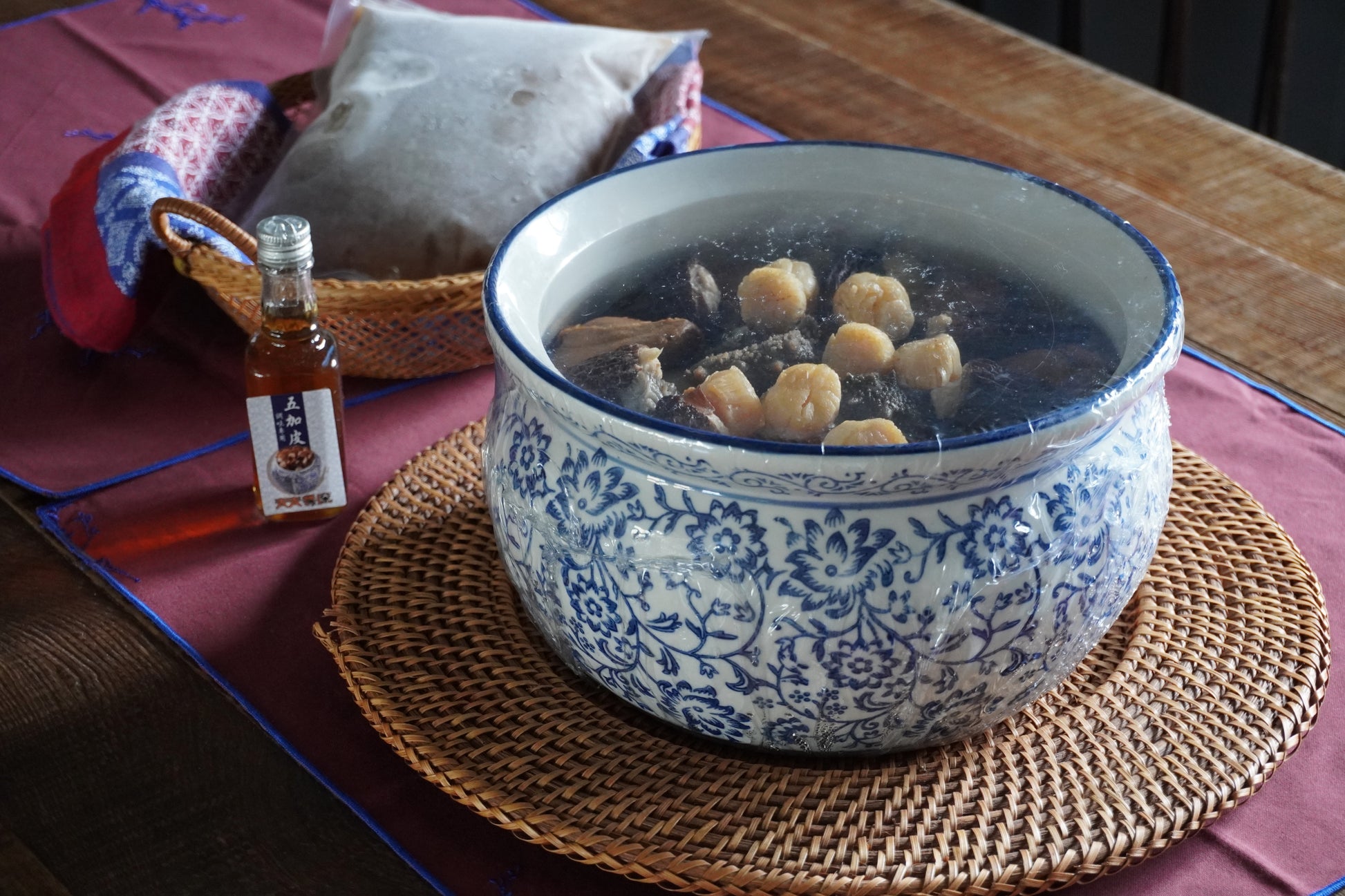 接著,這整甕會進冷凍庫,高湯也另外包裝冷凍。宅配抵達時,只要將二者解凍,把湯倒進甕裡一起蒸,就是年夜飯餐桌上那盅噴香的寶藏。