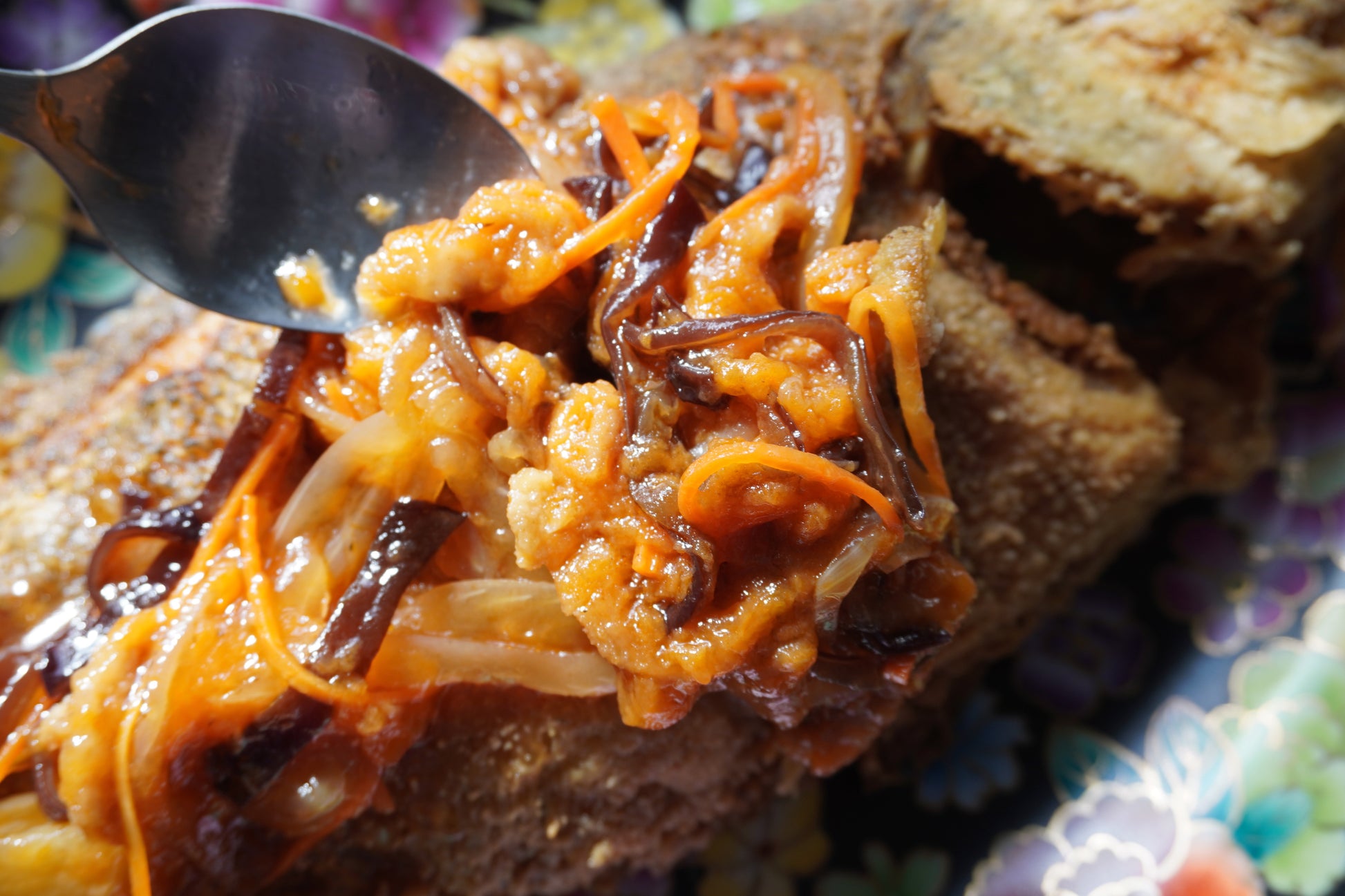 【成分】洋蔥、木耳、紅蘿蔔、肉絲、山泉鱸魚、鳯梨塊、五柳醬
