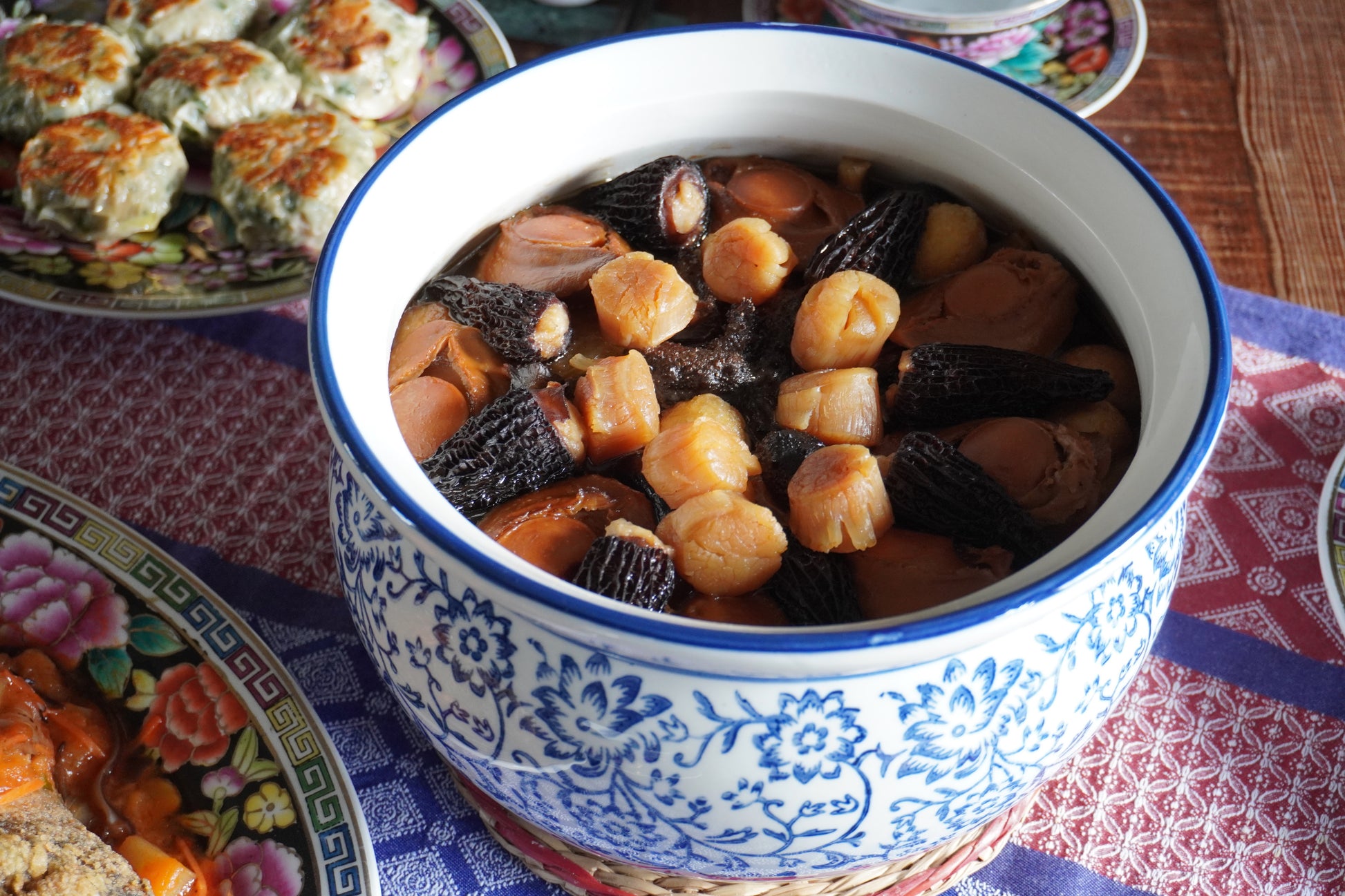另一樣是「羊肚菌塞肉餡」,也是我們獨家!羊肚菌泡發後,擠入以豬絞肉、荸薺、蔥薑製成的肉餡,經過蒸煮後,飽含鮮汁與蕈香,鋪排表面,特有氣勢。