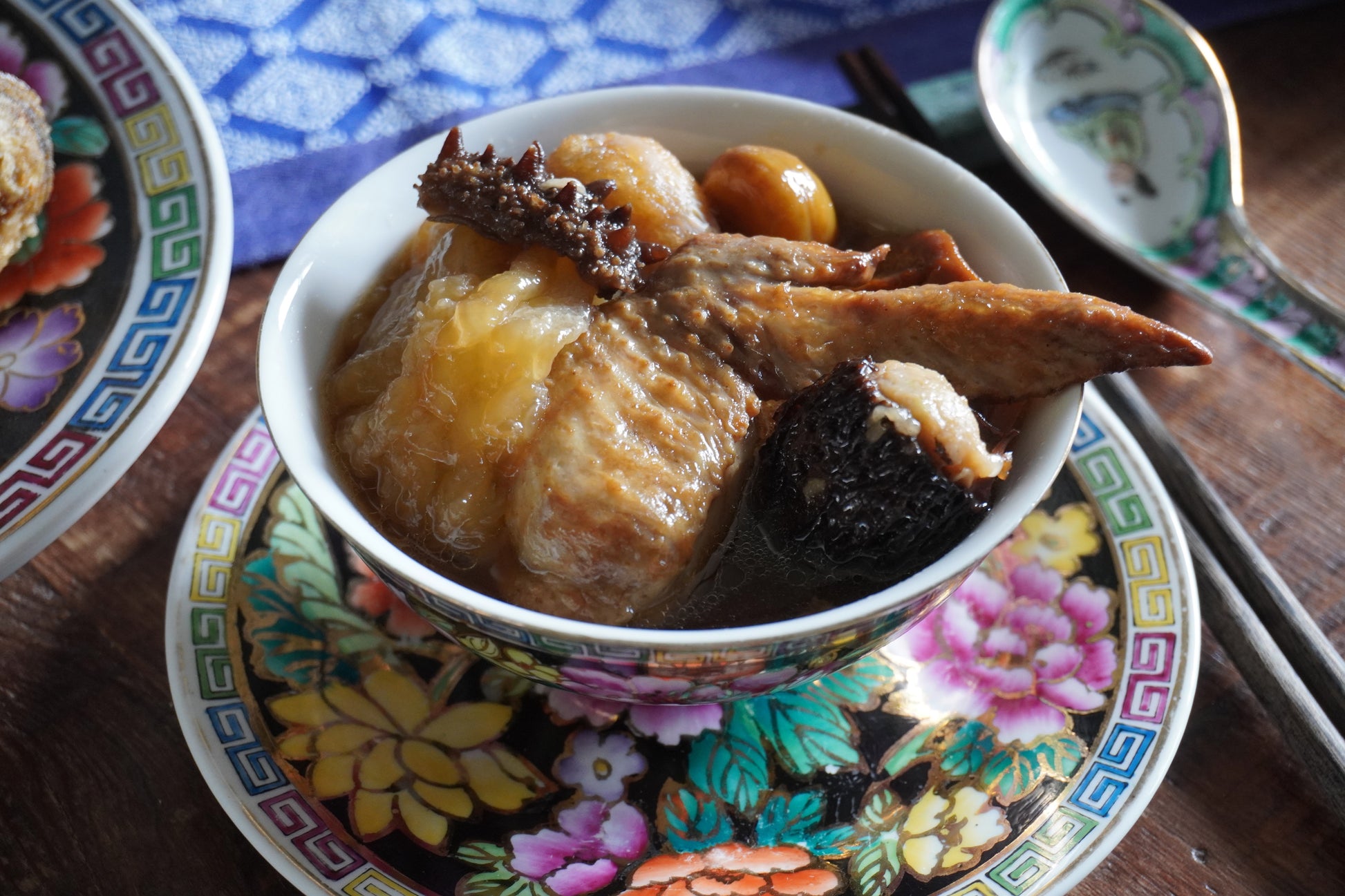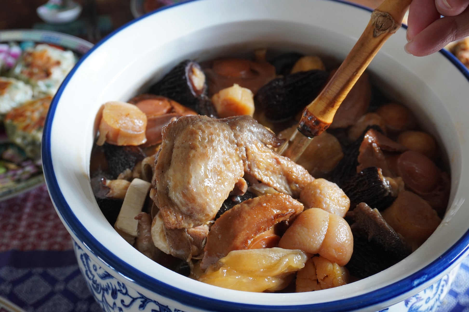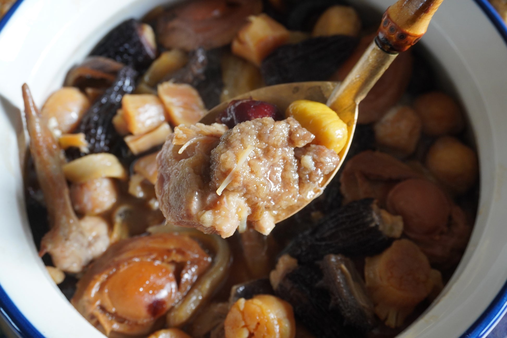 吃了好幾年的青青餐廳佛跳牆,一直以為深沈厚實的湯頭是某種加了醬油的紅燒湯,這天才知曉,其風味是花時間層層堆疊上來的