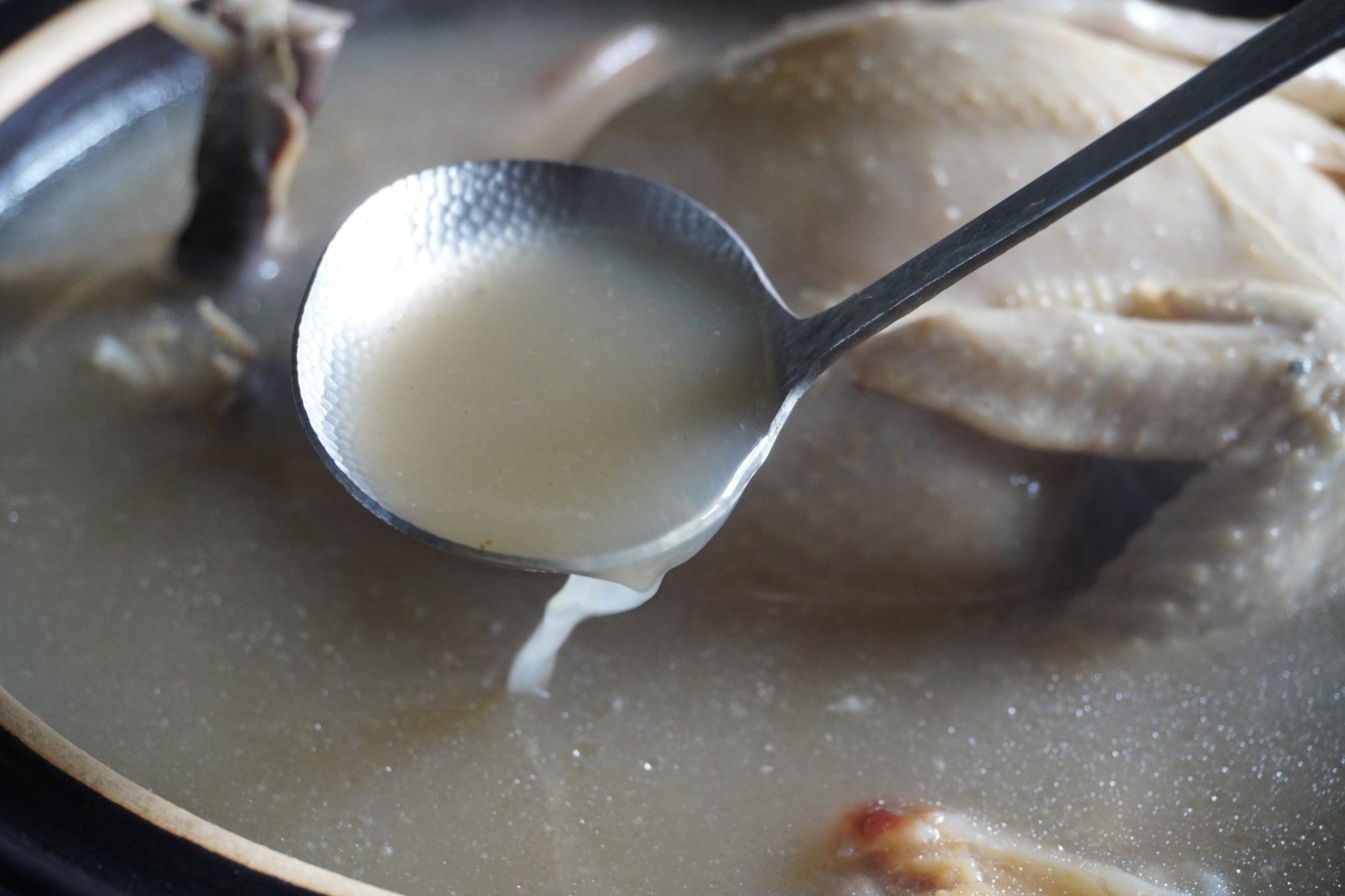 完全解凍後,將高湯倒入裝有食材的甕中,再蒸約1小時以上至中心點熱透即可享用。