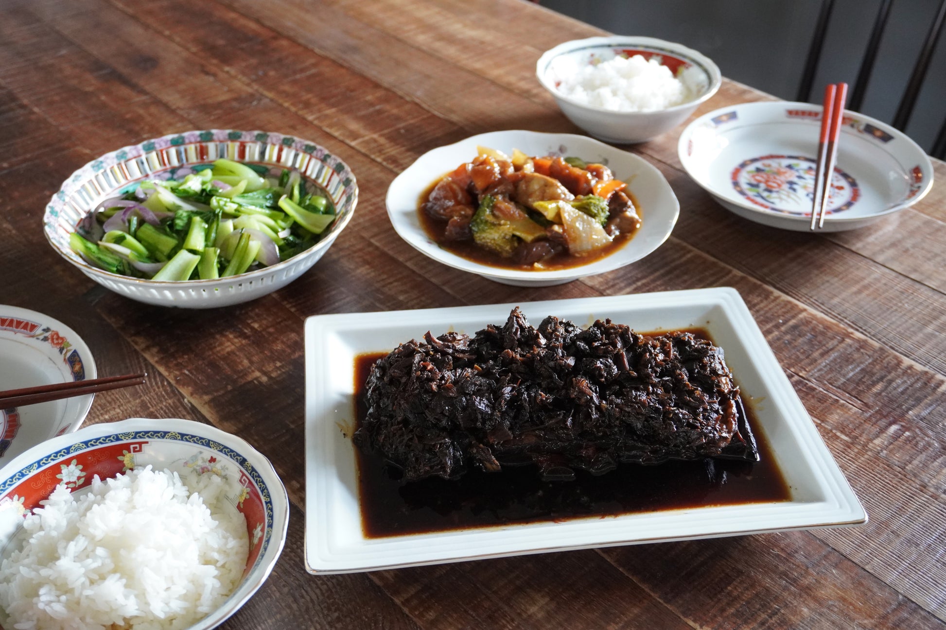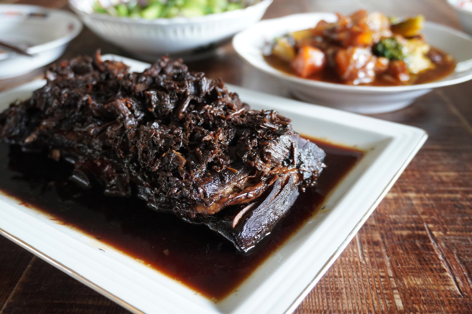 有客人說:「梅干控肉很好吃,但能不能換成肋排呢?」原本以五花肉燒煮的經典菜式,就這樣意外衍生成「梅干菜燒肋排」。師傅堅持必須整塊助肋排下鍋,才能與梅干菜比例合宜,燒出最佳風味。