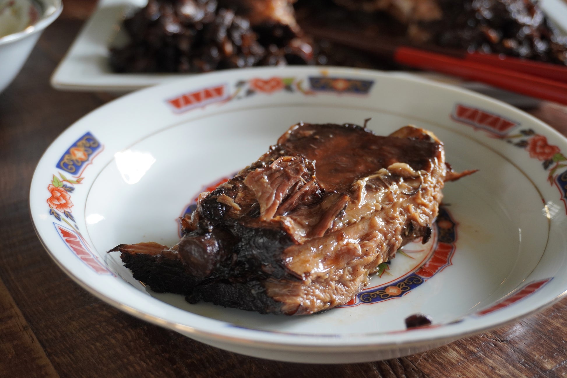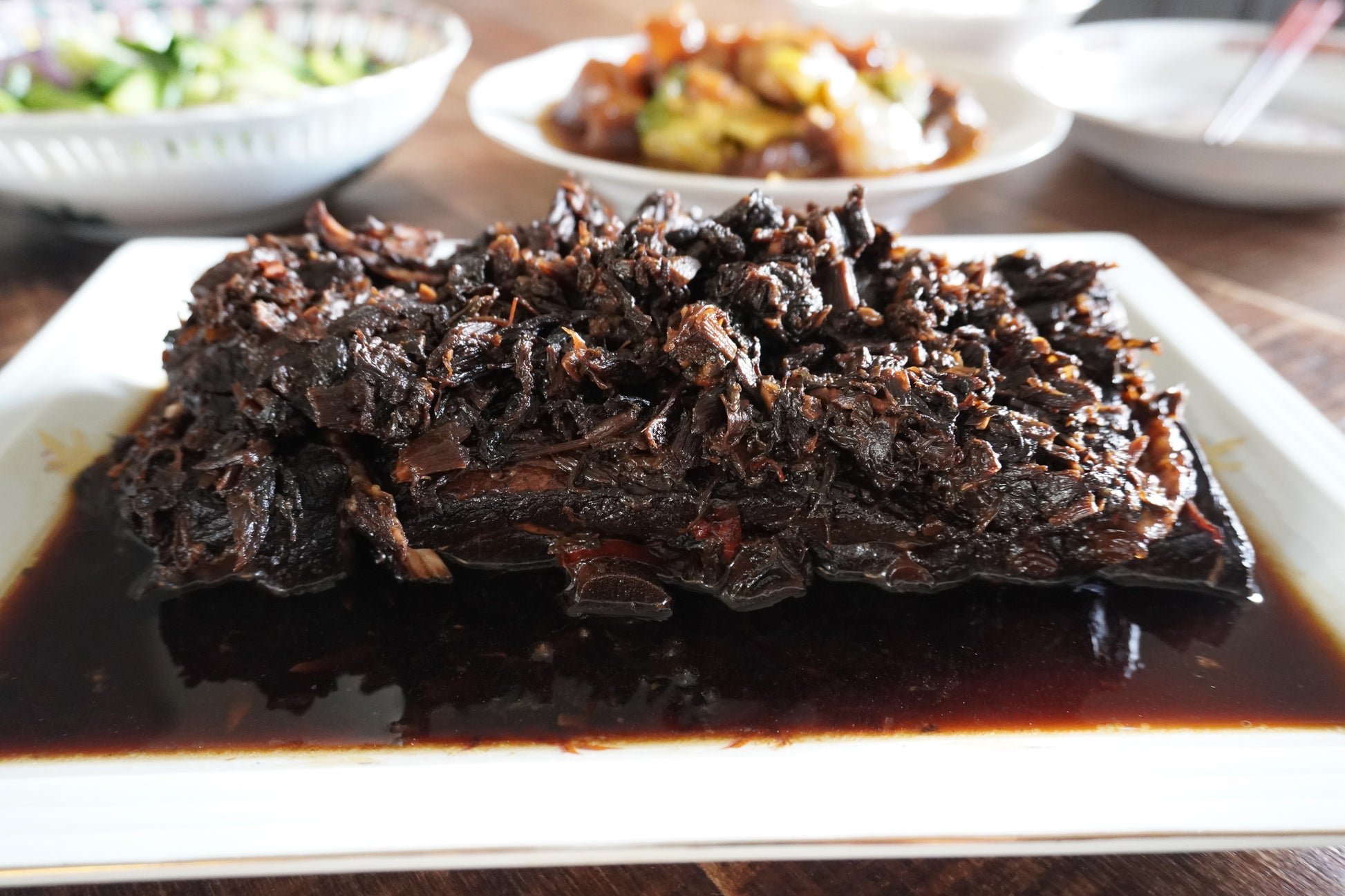 梅干菜經醃漬與日曬,帶著鹹、酸、甘醇、沉厚的獨特香氣;肋排則經長時間慢火燒製,外焦內嫩、肉汁豐富。兩者交織出濃厚卻不膩的層次口感,每一口都鹹香回甘,令人回味無窮。