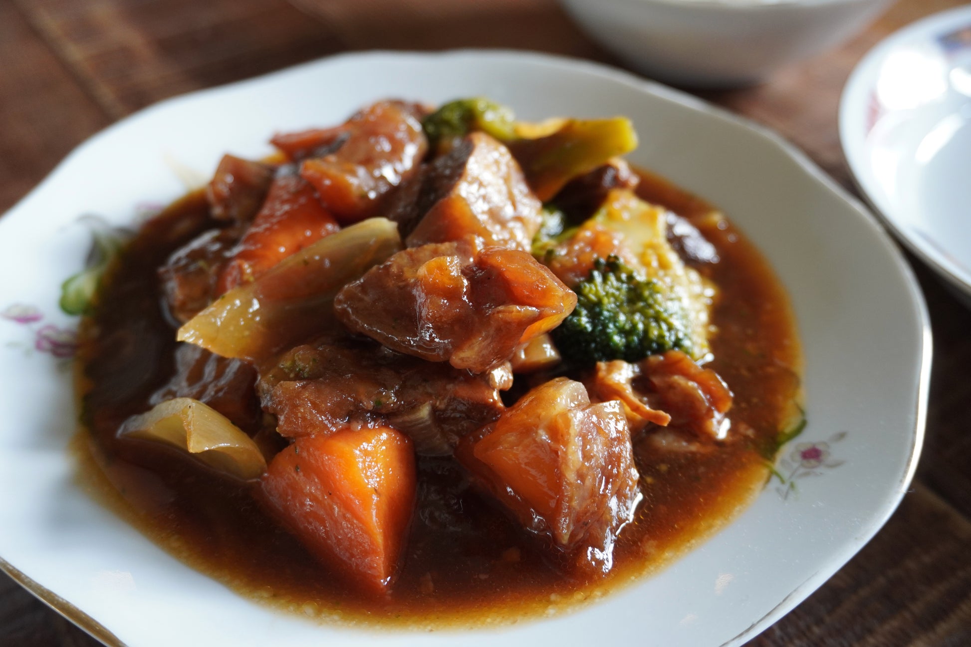 【成分】牛腩(中南美)、牛筋(中南美)、洋蔥、青花菜、紅蘿蔔、醬油、糖、鹽、味素、酒、青蔥、蒜仁、老薑、番茄、番茄醬、八角、桂皮、草果、香葉