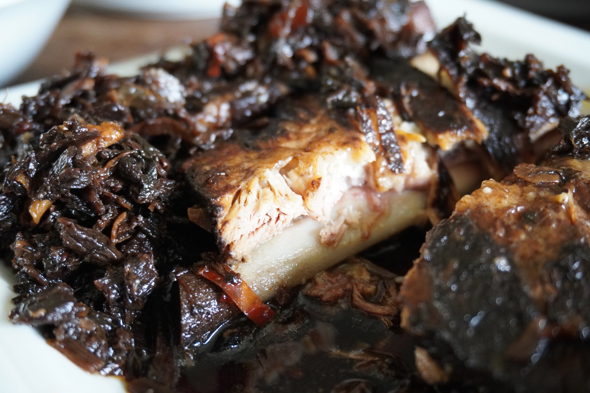 【成分】豬肋排(台灣)、梅乾菜、醬油、糖、鹽、酒、青蔥、蒜仁、老薑、桂皮、草果、香葉