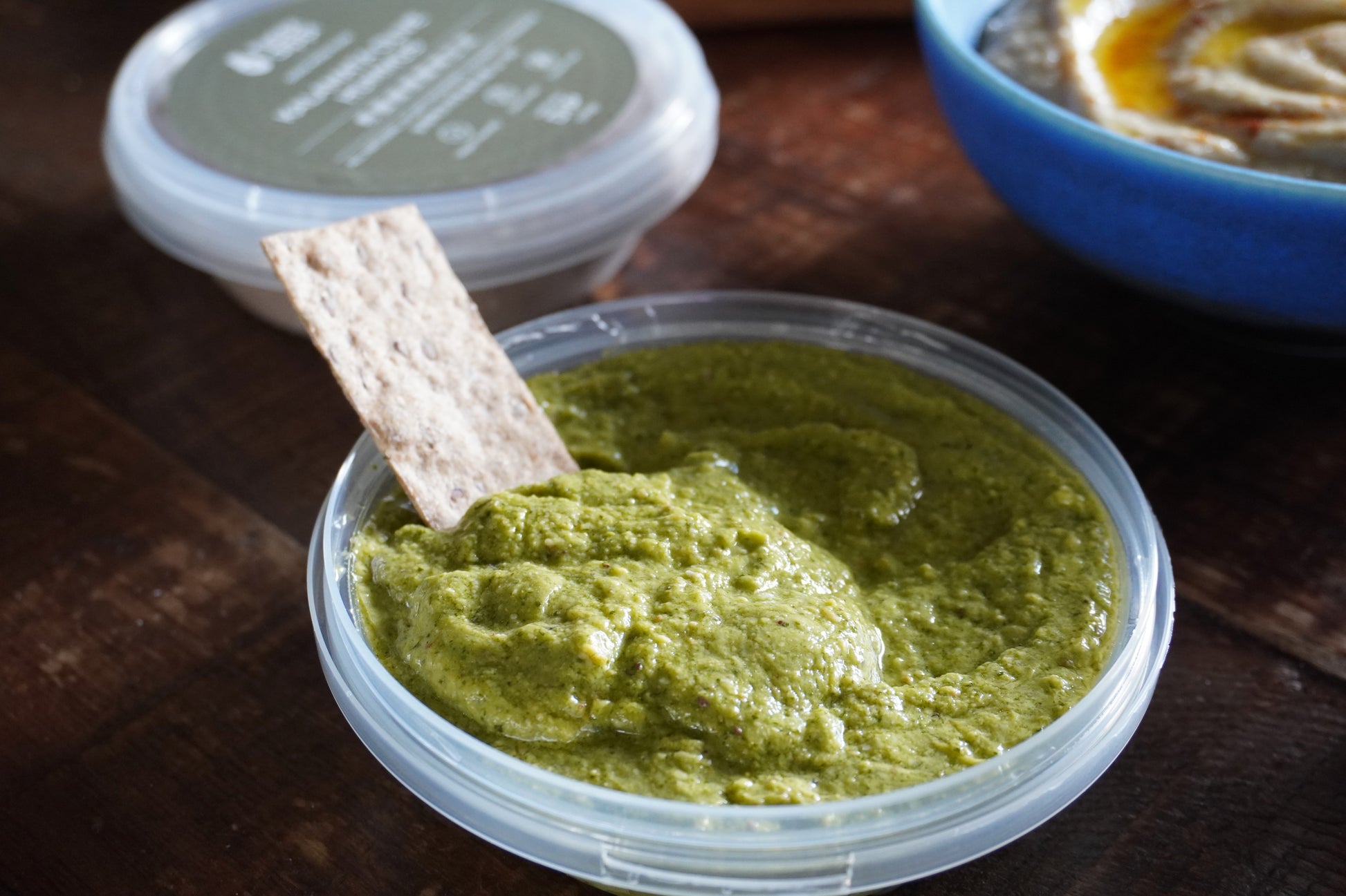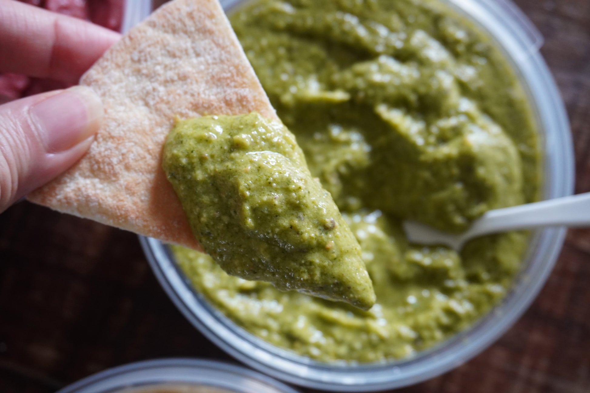 富含奶油般的酪梨、開心果、香芹、橄欖油以及檸檬汁調製而成,這款簇新鮮綠、讓人納悶怎麼可以那麼好吃的沾醬,搭上任何食物都是絕配。