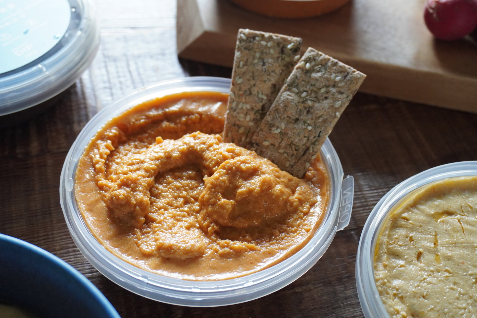 【成分】鷹嘴豆、烤紅椒、芝麻、特級初榨橄欖油、檸檬汁、大蒜、喜馬拉雅鹽、孜然粉、煙燻紅椒粉