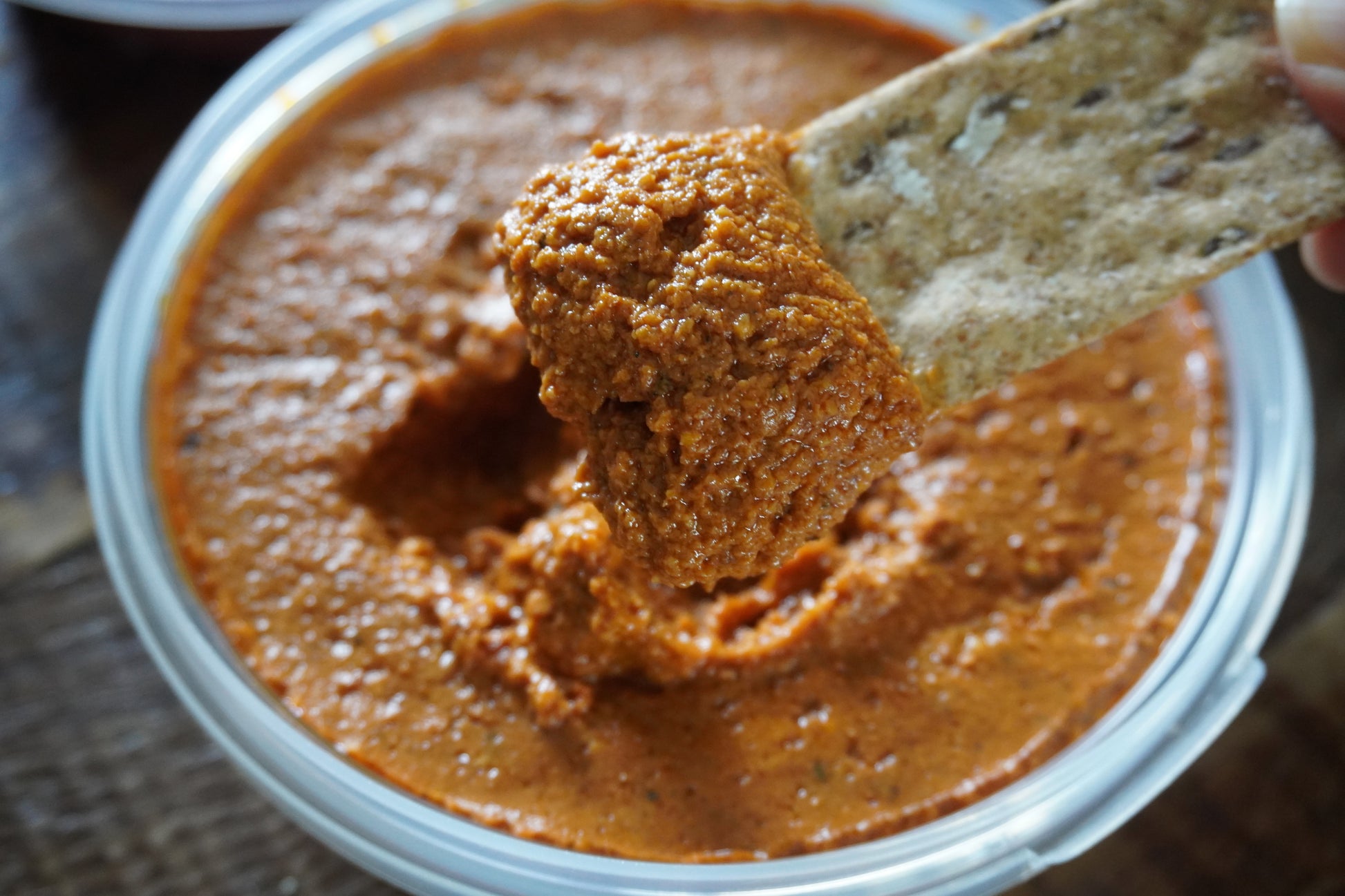 【成分】烤紅椒、核桃、特級初榨橄欖油、檸檬汁、大蒜、石榴糖漿、喜馬拉雅鹽、烏爾法胡椒片、紅椒粉、卡宴辣椒、孜然粉、洋車前子