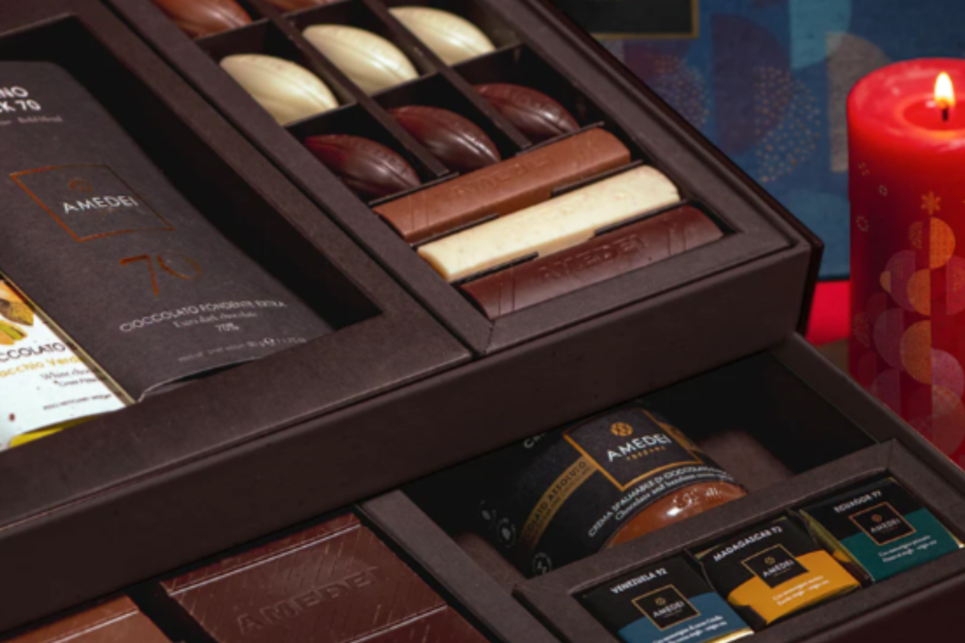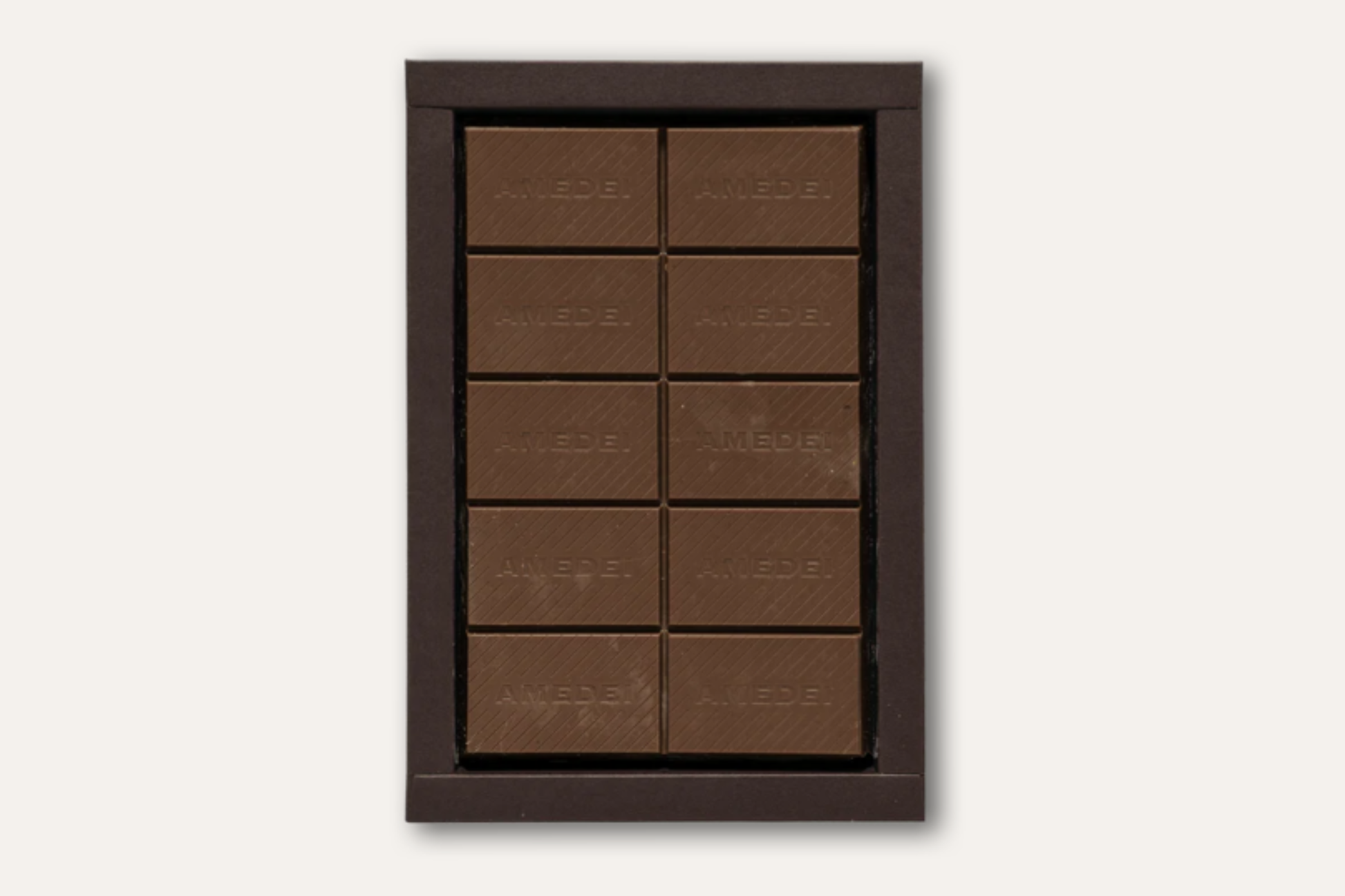以「全世界最好的可可豆,製作最好的巧克力」為信念,採用稀有僅佔全球3%的 Criollo 可可,經「非直火烘焙」與長達 72小時研磨 精製至12微米,使口感細緻如絲、香氣層次豐富。自1998年上市以來,AMEDEI 連續十年榮獲 倫敦巧克力學院 AOC 金獎,被譽為「巧克力之王」,堪稱精品巧克力中的巔峰之作。
