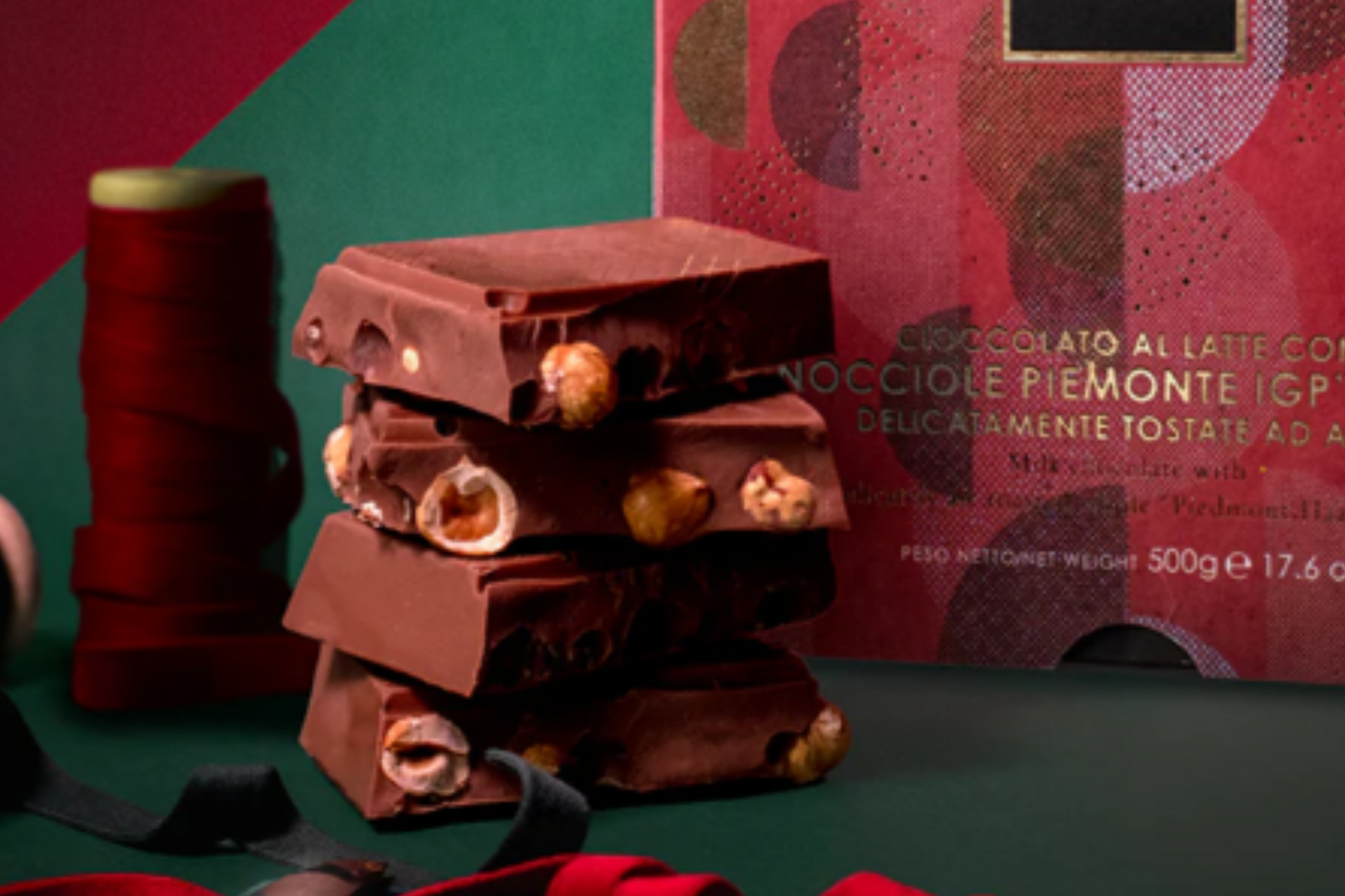 這款牛奶巧克力的傑作富含珍貴的皮埃蒙特 IGP 榛子。