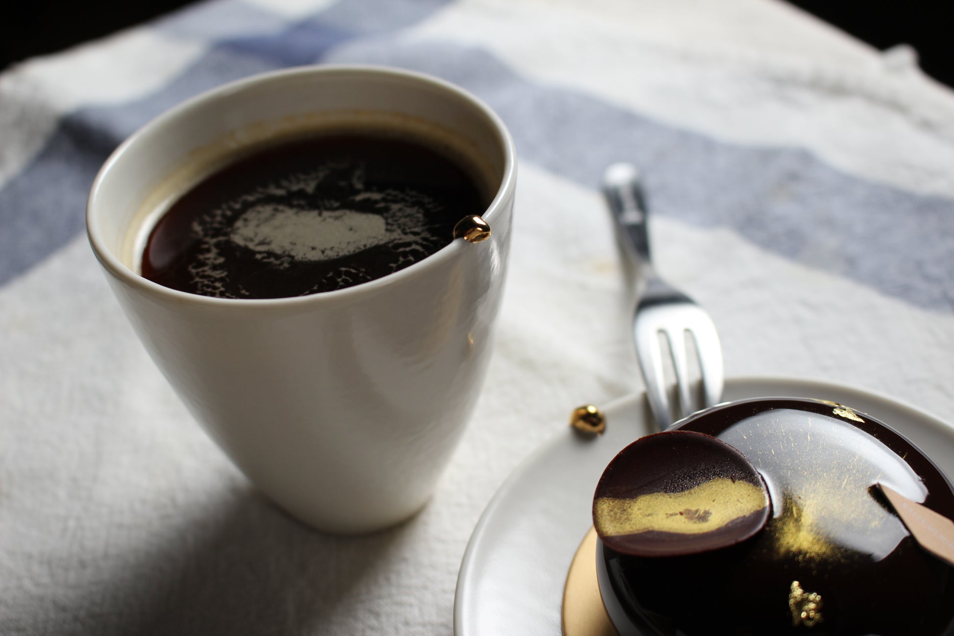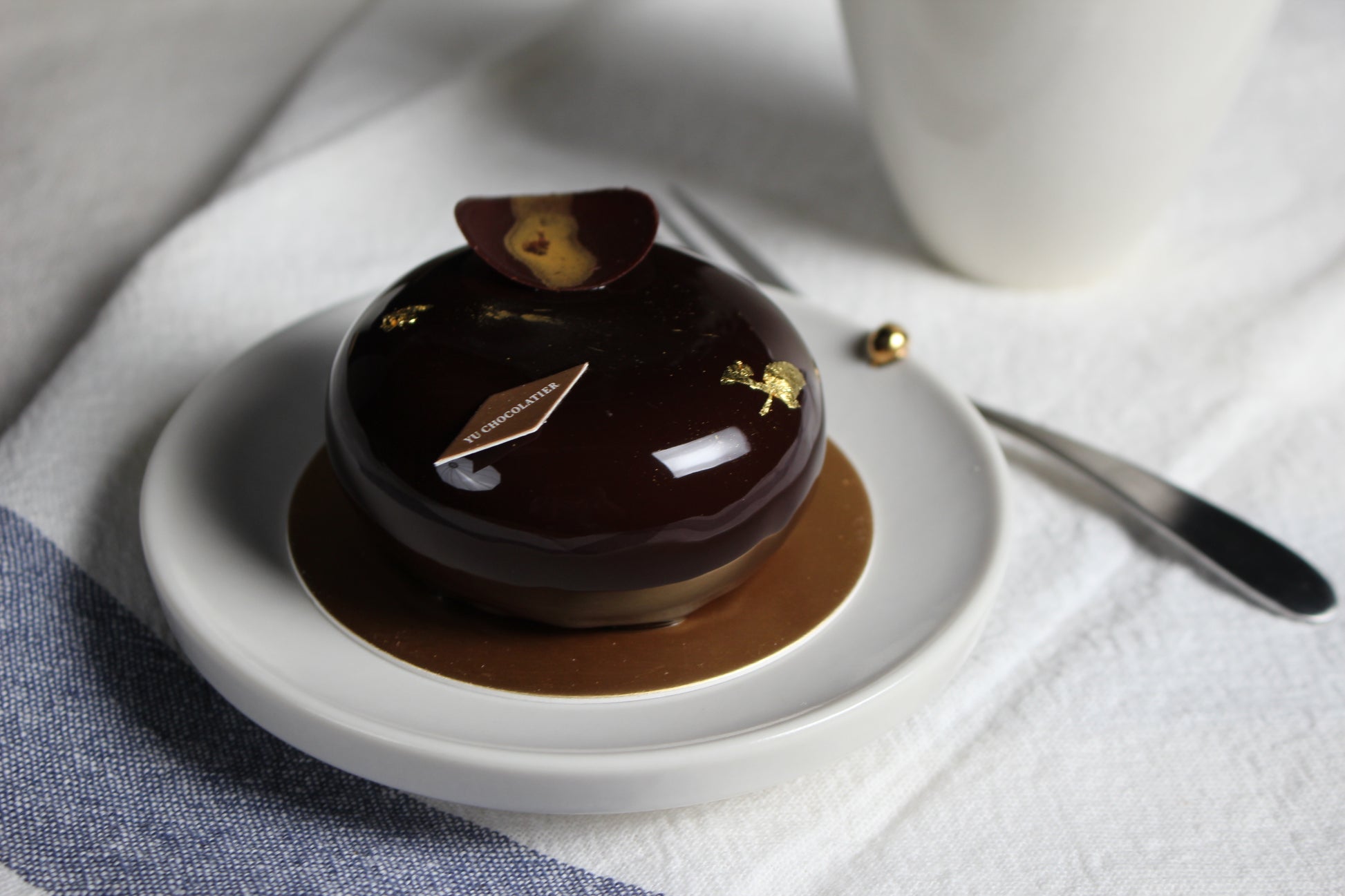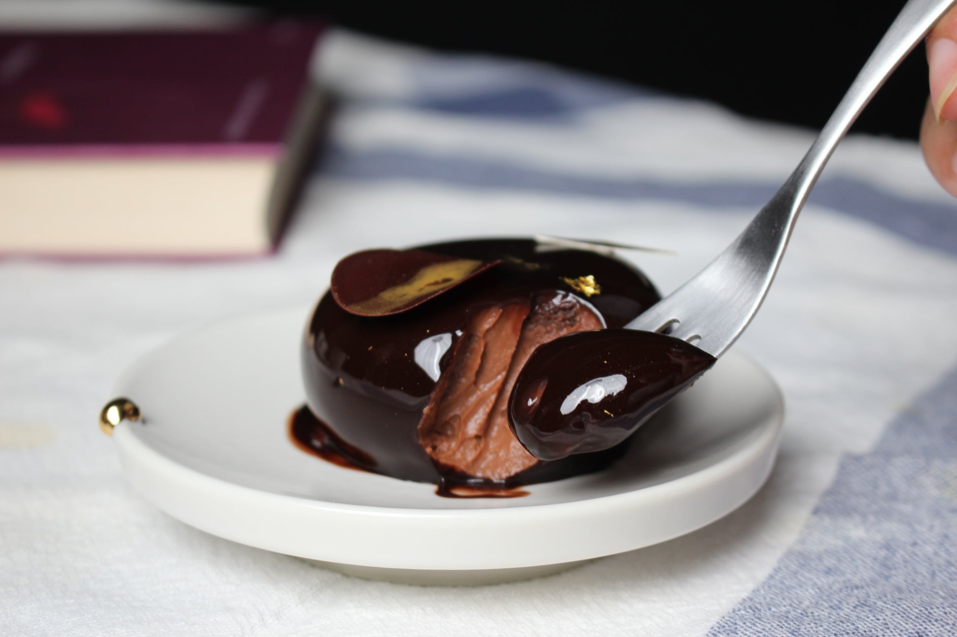 ▴ 畬室的招牌巧克力蛋糕-SHIBUSA,點綴的金箔和小金豆相呼應