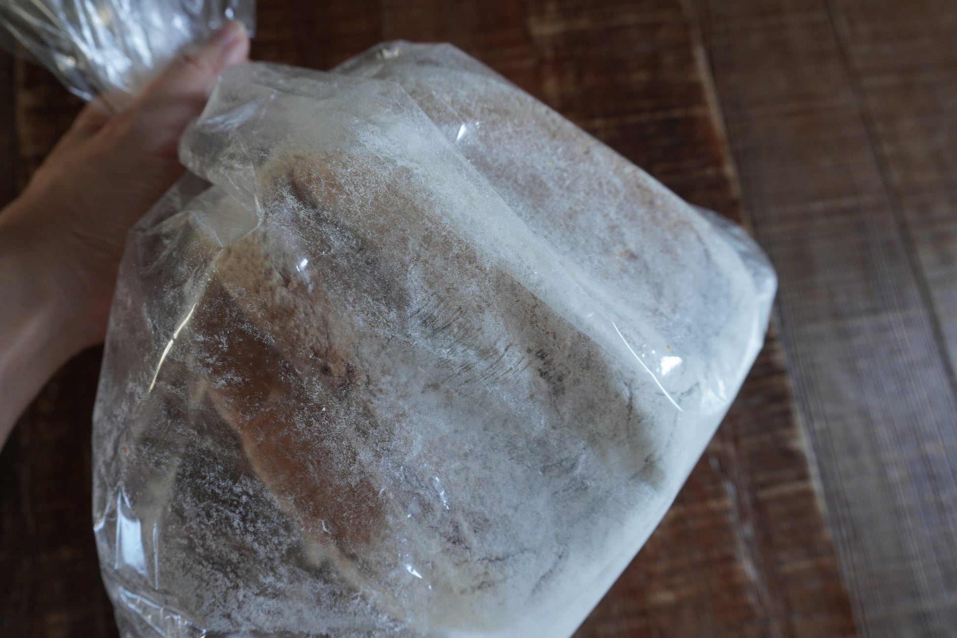【建議食用方式】從冷凍⾄常溫約3⼩時後再開封,撒入糖粉後抓住袋⼝左右均勻搖晃覆蓋後即可食⽤,可切片稍微烤箱加熱,或加上打發鮮奶油、⽔果等搭配享⽤。