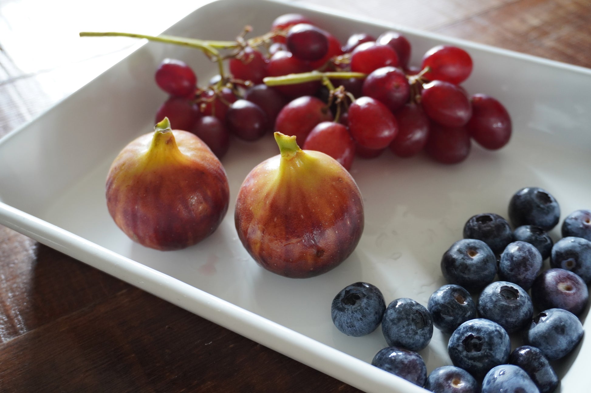 接著裝飾上喜氣的水果吧!義大利人常用覆盆子、藍莓、草莓,我選用台灣當令的紅色水果:無花果、紅葡萄,也非常好看!等之後草莓大出,就更紅艷了~