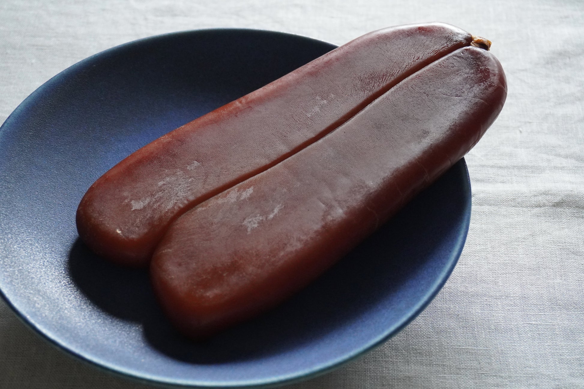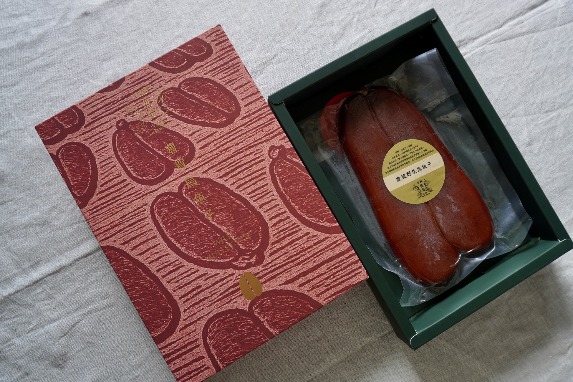台灣台南以在地的野生烏魚子依循古法製造,整塊烏魚子搓鹽後,由經驗獨到的老師傅細細修補,在日出與日落、日頭最輕柔時,至短曝曬自然風乾七日 ,由老師傅不停確認乾燥程度、翻面、收起再擺放,濃縮進太陽的風味。