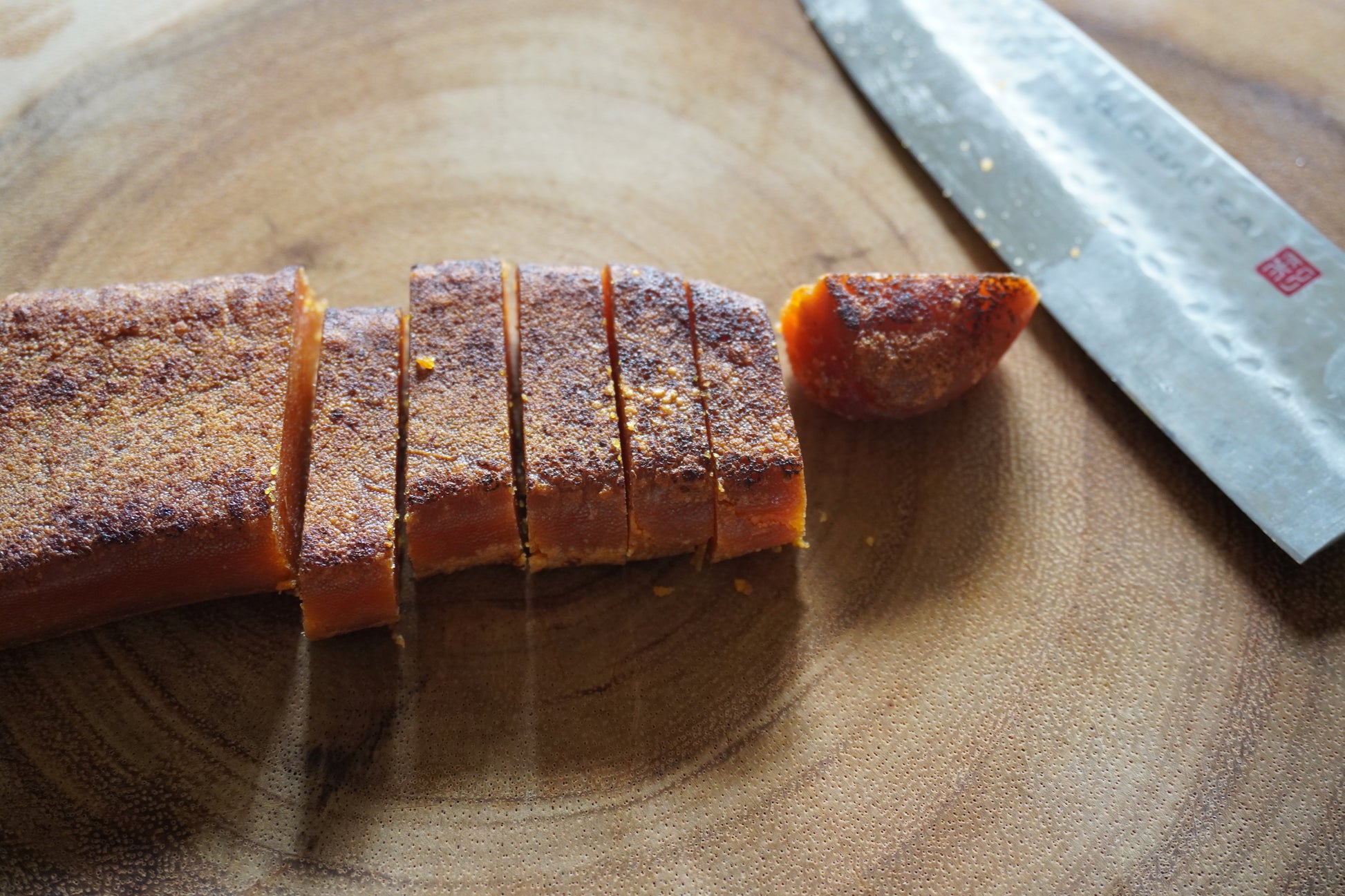 這也是我們繼「烏魚子棒棒糖」、「海苔年糕」、「柿餅三明治」後,想要推薦給大家的2026新吃法!我覺得最棒的一點是,因為羊羹酒香盈盈,你甚至不用幫烏魚子泡酒,省卻麻煩!